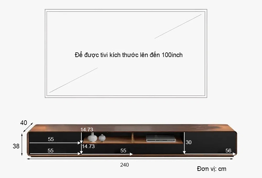 2 khoang mở trung tâm: Dễ dàng bố trí đầu phát, loa soundbar, sách decor