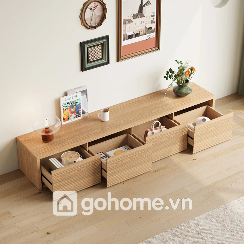 Mẫu kệ tivi trong hình chính là đại diện tiêu biểu cho phong cách sống hiện đại – đơn giản, tinh tế nhưng cực kỳ tiện ích và ứng dụng cao. Với chất liệu gỗ bền bỉ, thiết kế tối giản không tay nắm, tích hợp ngăn kéo rộng rãi – sản phẩm này chính là lựa chọn hoàn hảo cho mọi phòng khách hiện đại.