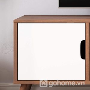Ngoài việc đặt tivi, bạn còn có thể dùng kệ để trang trí: đặt bình hoa nhỏ, khung ảnh, tượng decor hoặc sách yêu thích. Ngăn giữa có lỗ đi dây sẵn, đảm bảo gọn gàng cho các thiết bị điện tử. Hai bên tủ kín giúp giấu đi các vật dụng không cần thiết khỏi tầm mắt.