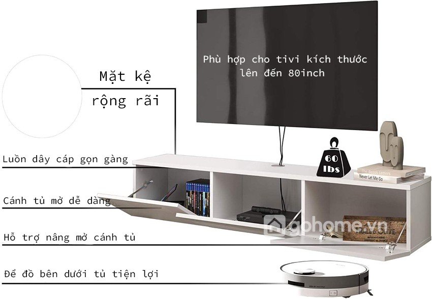 Không cần đầu tư quá nhiều, chỉ với một chiếc kệ tivi treo tường thiết kế tối giản gỗ MDF, anh có thể biến phòng khách trở nên gọn gàng – hiện đại – tinh tế và tràn đầy thẩm mỹ.