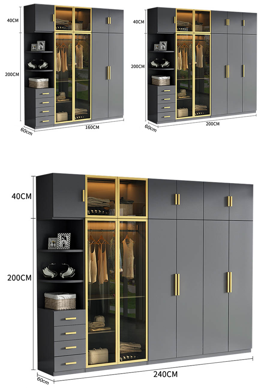 Thiết kế tinh tế với hệ cánh kính khung nhôm ánh vàng, đèn LED tích hợp, phối kệ đồ mở thông minh – tất cả hòa quyện để tạo nên một sản phẩm không chỉ để chứa đồ mà còn là nội thất điểm nhấn cho căn phòng thêm phần đẳng cấp.