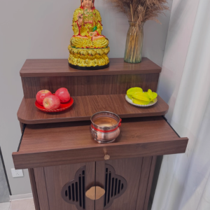 Thiết kế này giúp không gian thờ luôn gọn gàng, tránh bày biện quá nhiều trên mặt tủ – đảm bảo sự trang nghiêm và thẩm mỹ.