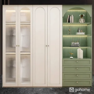 | Chất liệu: | gỗ mdf cốt chống ẩm phủ mine, cánh PVC kết hợp kính sọc |