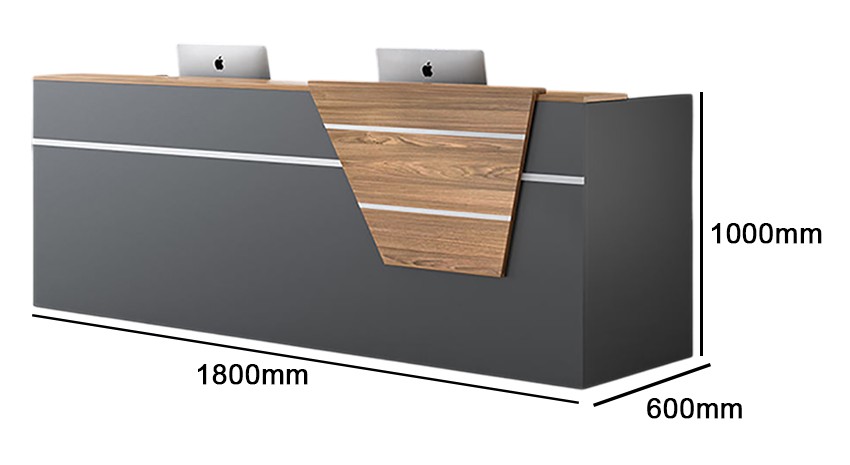 Thiết kế tối giản nhưng nổi bật, kết hợp giữa hai gam màu xám hiện đại và nâu vân gỗ tự nhiên, tạo cảm giác vừa mạnh mẽ, vừa ấm áp. Phần mặt bàn gỗ nổi bật, được cắt góc tạo điểm nhấn hình học tinh tế, mang đến cảm giác vững chắc – chuyên nghiệp – sang trọng.