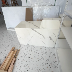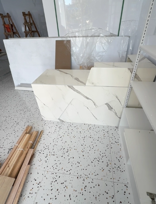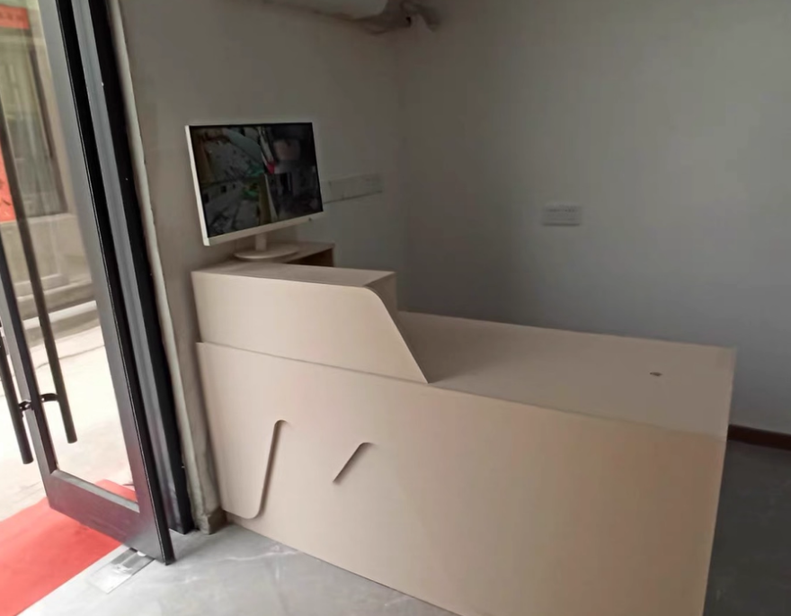 Sau khi đặt quầy, khu vực lễ tân nhìn chuyên nghiệp hơn hẳn.
