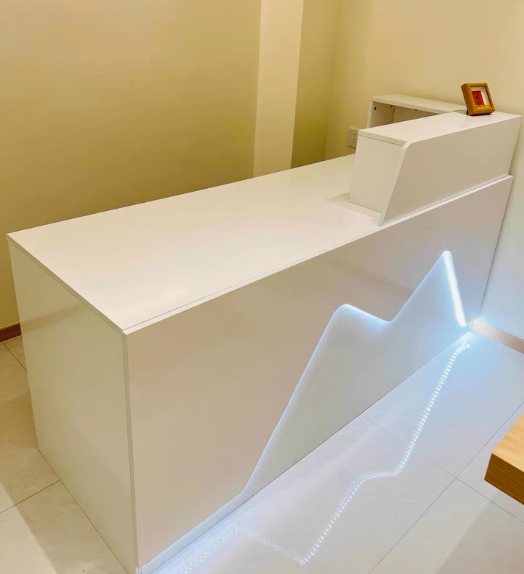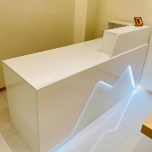 Quầy lễ tân thiết kế đẹp, nhìn rất hiện đại và chuyên nghiệp.