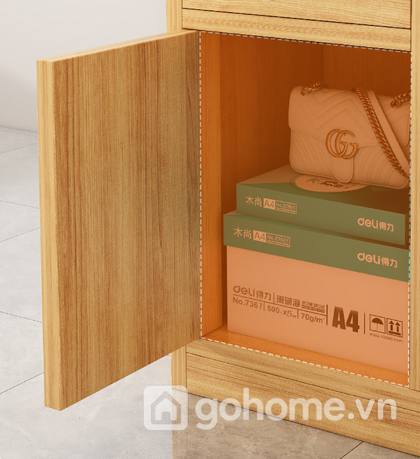 - Ngăn tủ có cánh đóng kín giúp bảo quản vật dụng gọn gàng