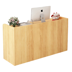Mẫu quầy lễ tân hiện đại này được thiết kế theo phong cách tối giản (Minimalism), loại bỏ các chi tiết rườm rà nhưng vẫn đảm bảo tính thẩm mỹ cao. Tông màu gỗ sáng tự nhiên mang lại cảm giác ấm áp, thân thiện, phù hợp với nhiều loại hình kinh doanh khác nhau.