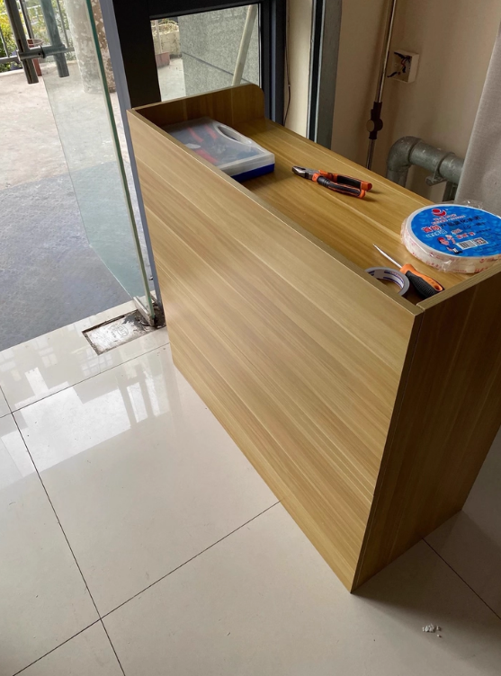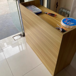 Quầy được làm từ gỗ công nghiệp MDF phủ melamine, mang lại nhiều ưu điểm vượt trội: