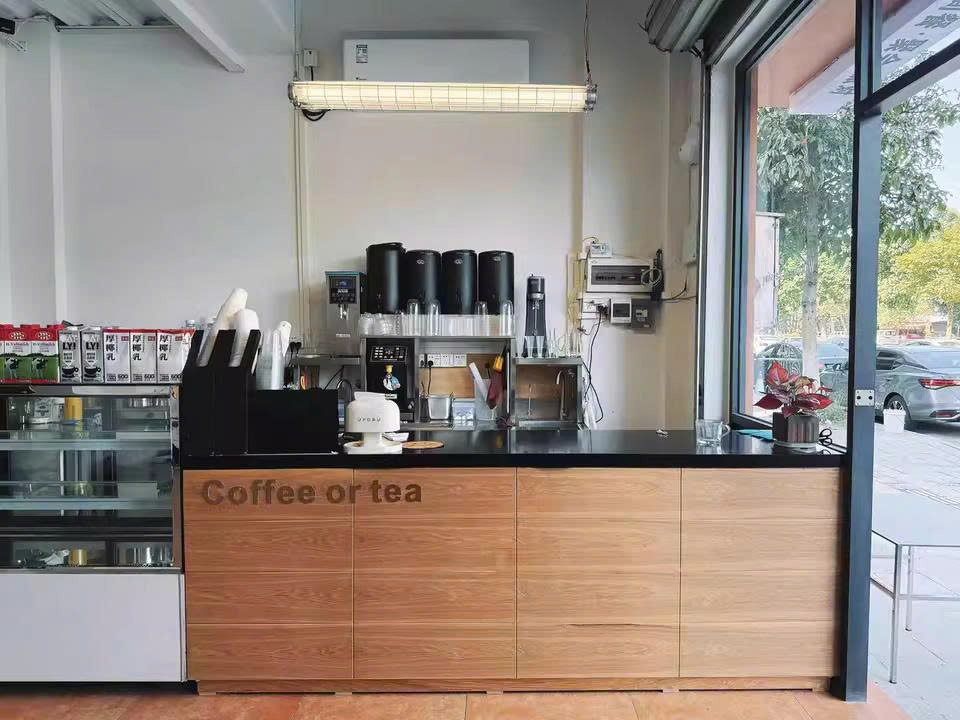 Kệ phía sau hoặc phía dưới: lưu trữ nguyên liệu, vật dụng phục vụ – tất cả đều gọn gàng, tối ưu thao tác cho barista.