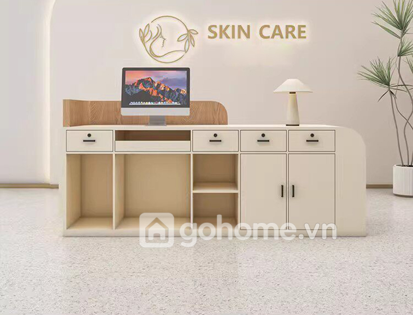 Bạn có thể tham khảo thêm các mẫu quầy lễ tân đẹp, bàn quầy tiếp tân hiện đại, quầy lễ tân chữ L tại website GOHOME.VN để có thêm nhiều lựa chọn phù hợp với diện tích spa của mình.