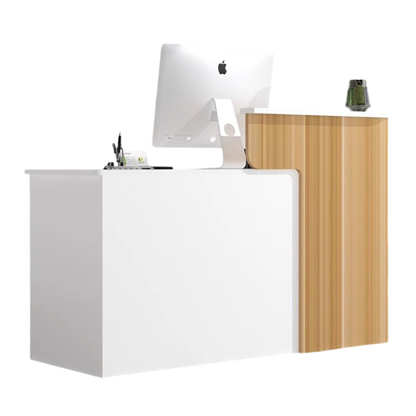 Mẫu quầy lễ tân thiết kế nhỏ gọn tiện lợi là lựa chọn lý tưởng cho những không gian kinh doanh hiện đại. Với kiểu dáng tối giản, kích thước hợp lý cùng sự kết hợp hài hòa giữa màu trắng và vân gỗ ấm áp, sản phẩm mang đến cảm giác tinh tế, thân thiện và sang trọng.