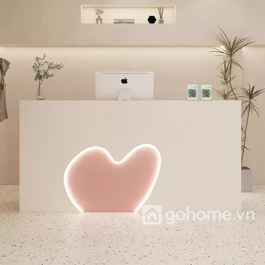 Với điểm nhấn trái tim LED độc đáo, gam màu nhẹ nhàng và chất liệu bền đẹp, mẫu quầy này chính là lựa chọn hoàn hảo cho các spa, thẩm mỹ viện theo đuổi phong cách hiện đại – ngọt ngào – tinh tế.