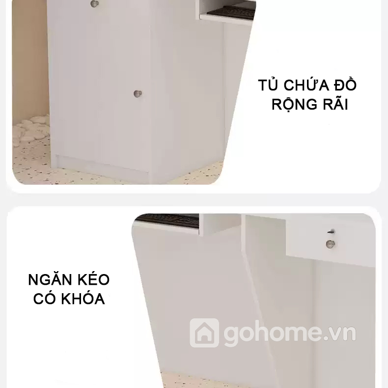 Sản phẩm sử dụng gỗ MDF phủ melamine cao cấp, đảm bảo khả năng chống cong vênh và chịu lực tốt trong điều kiện khí hậu Việt Nam.