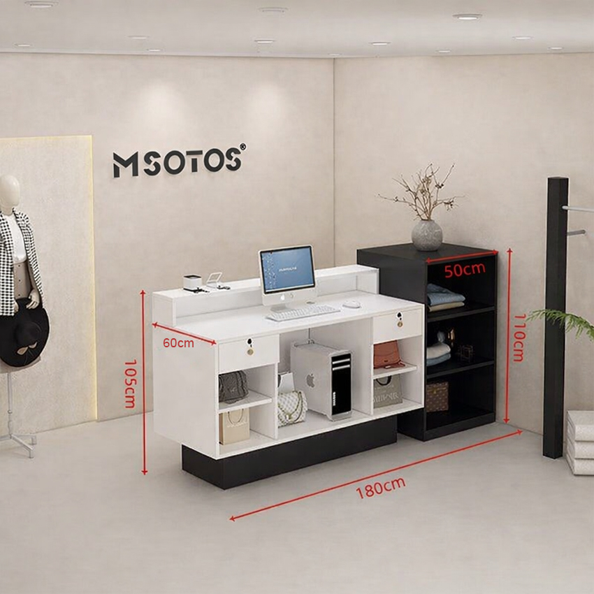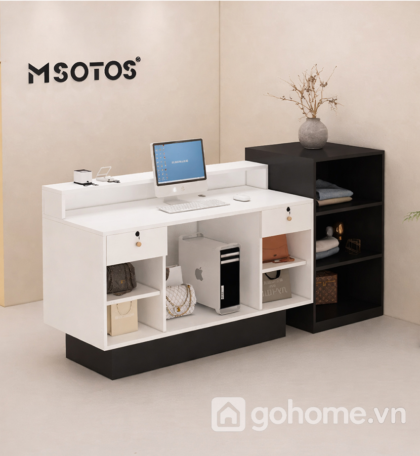 Bên cạnh đó, hệ thống tủ lưu trữ và ngăn kéo phía trong giúp nhân viên dễ dàng sắp xếp tài liệu, tiền mặt và các vật dụng cần thiết một cách gọn gàng.