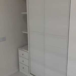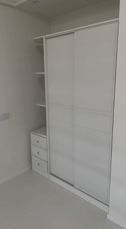 Thiết kế cửa lùa thông minh giúp tiết kiệm diện tích mở cánh, đặc biệt phù hợp với phòng ngủ có diện tích vừa và nhỏ. Bên cạnh đó, hệ kệ trang trí kết hợp mang lại điểm nhấn thẩm mỹ tinh tế, giúp gia chủ dễ dàng sắp xếp quần áo, phụ kiện hay đồ decor một cách khoa học.