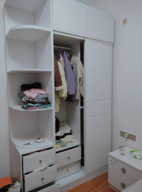 Thiết kế tủ khá thông minh, vừa treo đồ vừa có ngăn kéo rất tiện.