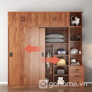 Điểm nhấn của sản phẩm là cánh trượt thông minh – hoạt động êm ái, nhẹ nhàng, tiết kiệm không gian mở cửa, giúp căn phòng luôn thoáng đãng. Bên trong tủ được phân chia ngăn khoa học, gồm nhiều tầng để gấp quần áo, hộc chứa đồ, cùng khu vực treo đồ tiện lợi, đáp ứng trọn vẹn nhu cầu sử dụng của cả gia đình.
