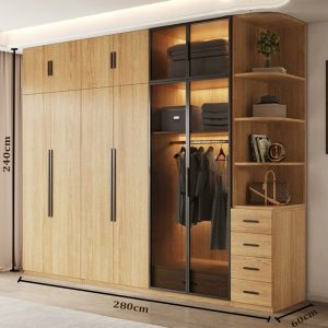 Đặc biệt, sự kết hợp hài hòa giữa cánh tủ gỗ và cánh kính giúp tạo điểm nhấn ấn tượng, vừa hiện đại vừa tiện dụng khi dễ dàng quan sát và chọn lựa quần áo.