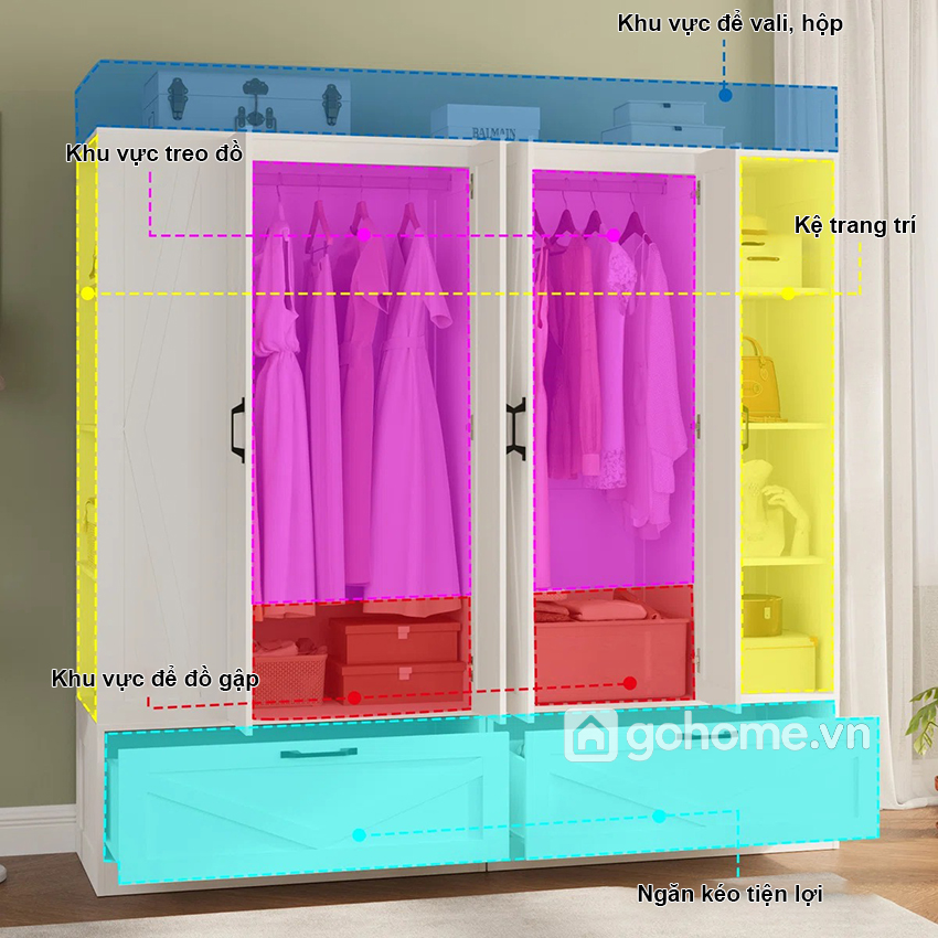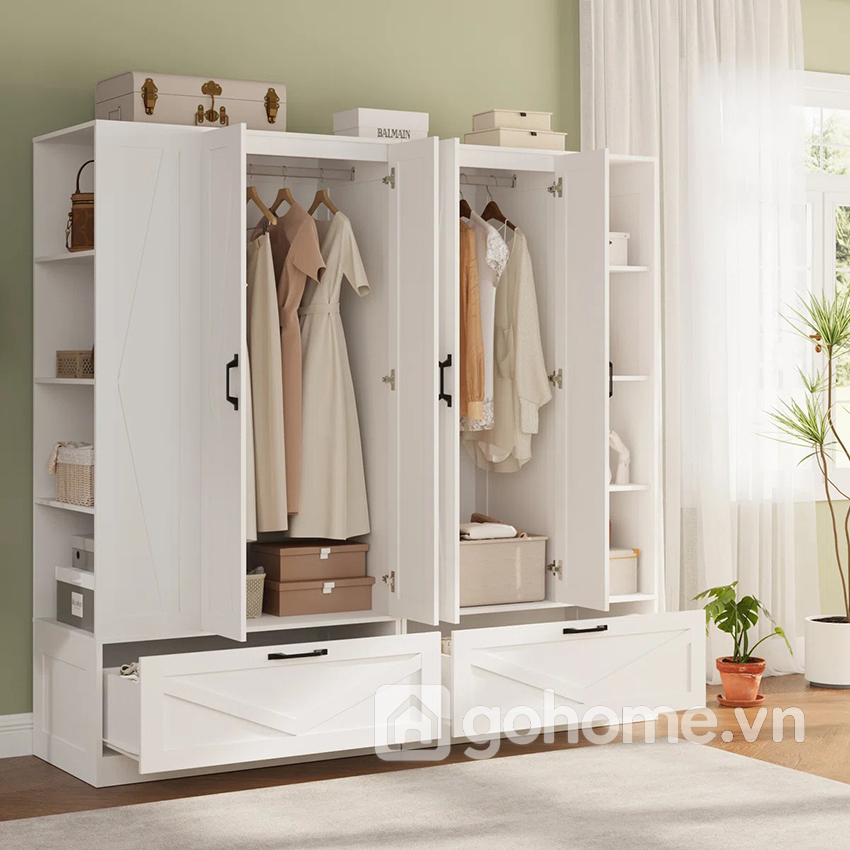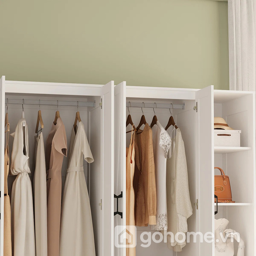 Tủ chia khoang hợp lý, phù hợp với nhiều loại trang phục.