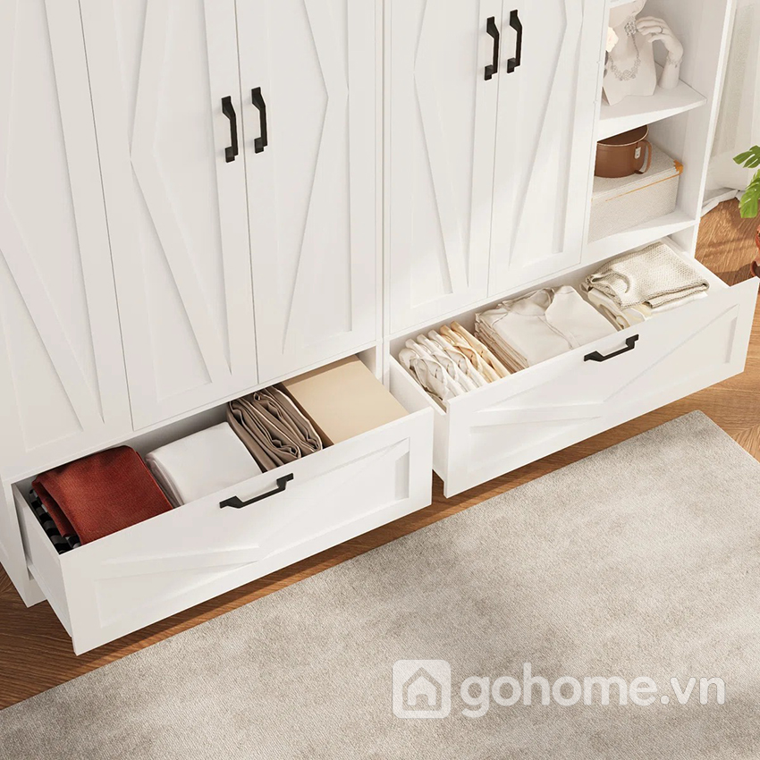 Dù sử dụng trong phòng nhỏ hay lớn, mẫu tủ này đều mang lại sự gọn gàng tuyệt đối nhờ thiết kế thông minh:
