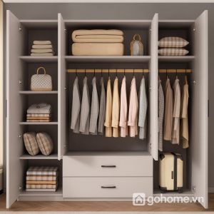 Nhiều khoang chứa: treo đồ, gấp quần áo, ngăn kéo tiện lợi.