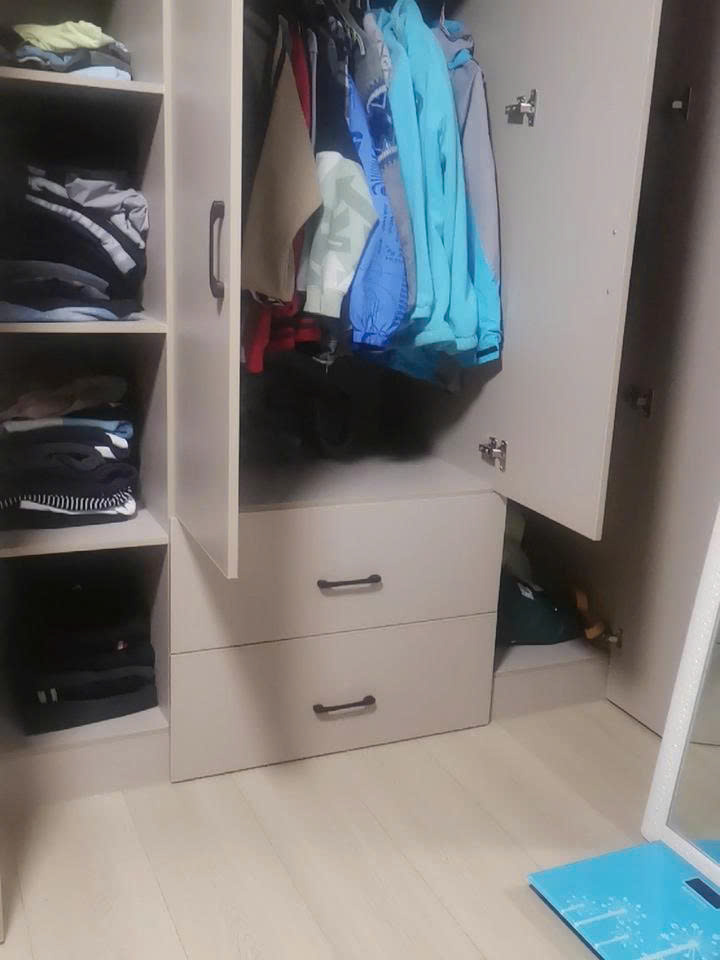 Không gian chứa đồ rộng, ngăn treo cao nên đồ dài cũng treo thoải mái. Rất tiện!