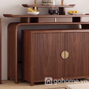 Với thiết kế tinh tế và màu gỗ trầm ấm, chiếc tủ bàn thờ này dễ dàng kết hợp với nhiều phong cách nội thất khác nhau.