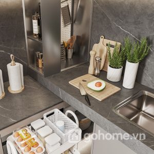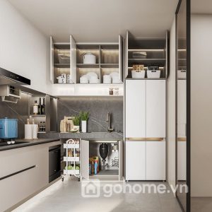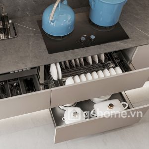 ✔️ Bếp gọn, nhiều ngăn chứa – không còn rối đồ