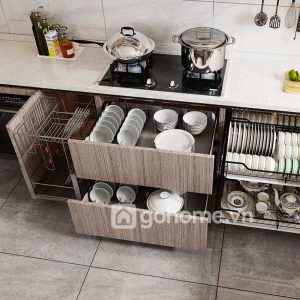 Ngăn kéo chia tầng: để chén đĩa – gia vị – muỗng nĩa rõ ràng