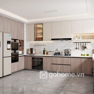 Điểm khác biệt lớn nhất của Tủ Bếp Gỗ Đa Chức Năng chính là sự kết hợp hoàn hảo giữa thẩm mỹ và công năng. Đây không chỉ là chiếc tủ bếp, mà là cả một hệ thống lưu trữ – nấu nướng – làm sạch được tổ chức khoa học và tinh tế. Được sản xuất theo công nghệ hiện đại tại xưởng GOHOME, mẫu tủ này mang lại cảm giác chuyên nghiệp như gian bếp trong các chương trình ẩm thực, nhưng vẫn giữ được sự ấm cúng trong từng góc nhỏ.