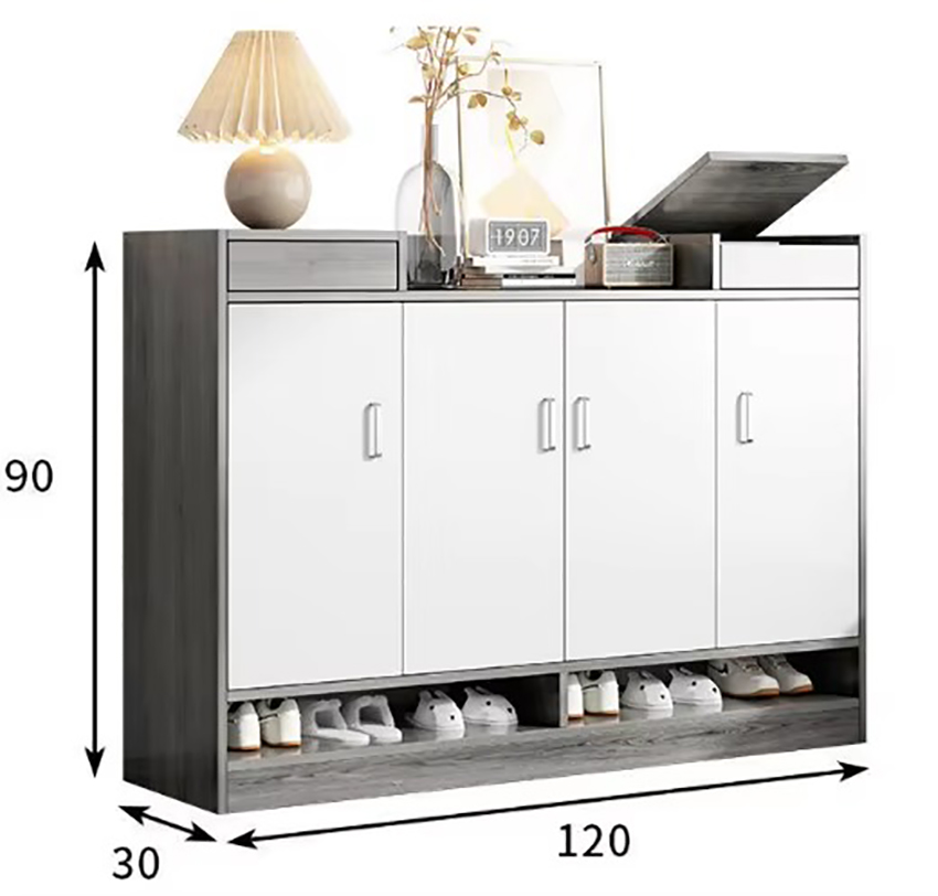 Khác với các mẫu tủ giày truyền thống, mẫu tủ này sở hữu thêm ngăn bật flip top nằm phía trên, giúp bạn:
