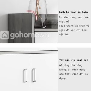 Tủ được sản xuất từ gỗ MDF lõi xanh chống ẩm, phủ Melamine màu xám mờ – đen tuyền cực kỳ thời thượng. Chất liệu này mang lại nhiều ưu điểm vượt trội: