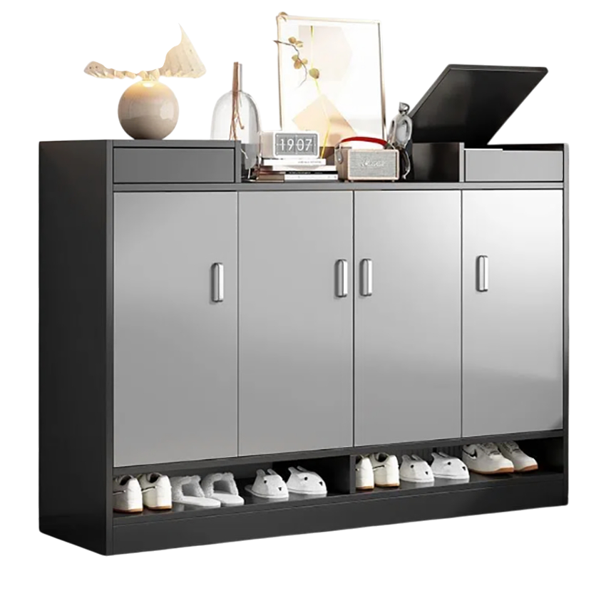 Màu xám – đen được xem là biểu tượng của sự tinh tế, mạnh mẽ và hiện đại. Khi kết hợp cùng nội thất tone trung tính như trắng, be, nâu nhạt, gỗ tự nhiên, chiếc tủ giày này sẽ tạo điểm nhấn cực kỳ ấn tượng và đồng bộ với tổng thể thiết kế nhà.
