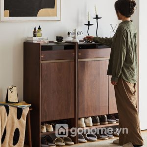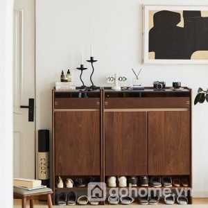Sản phẩm được thiết kế gồm nhiều khoang lưu trữ và một tầng kệ hở phía dưới – tối ưu sức chứa giày dép mà vẫn giữ được độ thoáng và thẩm mỹ cho không gian.