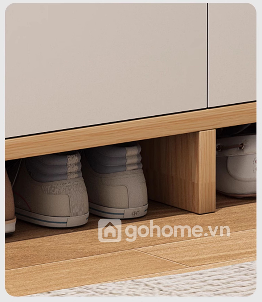 Khu vực để giày mở phía dưới giúp bạn thoải mái cất giày đi trong nhà hoặc dép đi hàng ngày, vừa tiện lấy vừa nhanh khô.