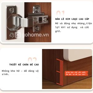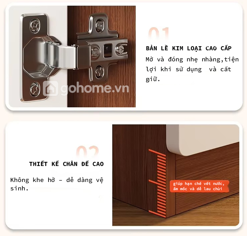 Bản lề chắc chắn, chống rỉ, tăng độ bền sử dụng, tránh cong vênh khi đóng mở thường xuyên. Đây là chi tiết tuy nhỏ nhưng lại phản ánh rõ sự chăm chút từng chi tiết trong thiết kế nội thất của Gohome.