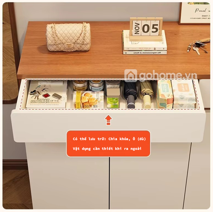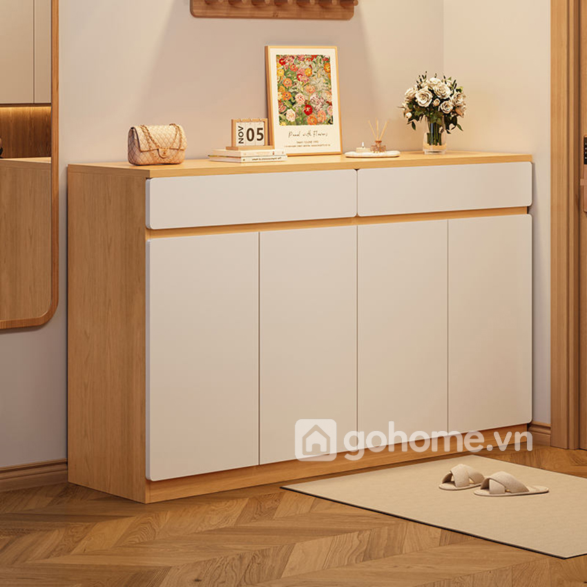 Chiếc tủ không đơn thuần là nơi cất giày, mà còn là điểm nhấn decor cho hành lang, phòng khách, ban công, giúp tổ ấm thêm ngăn nắp và thanh lịch.