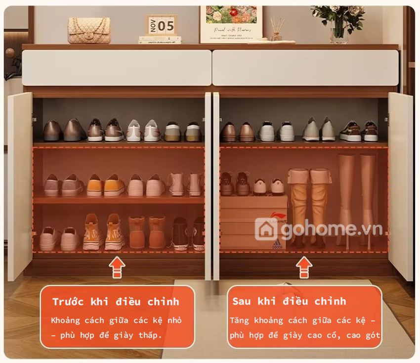 Bạn đang đau đầu vì giày dép chất đống ở cửa nhà? Mỗi lần tìm đôi giày yêu thích lại tốn hàng chục phút? Hay bạn đang cần một chiếc tủ giày đẹp – hiện đại – tối ưu không gian mà vẫn giá hợp lý? Hãy để tủ giày gỗ công nghiệp hiện đại đến từ GOHOME giúp bạn “lột xác” không gian sống một cách ấn tượng và tiện nghi!