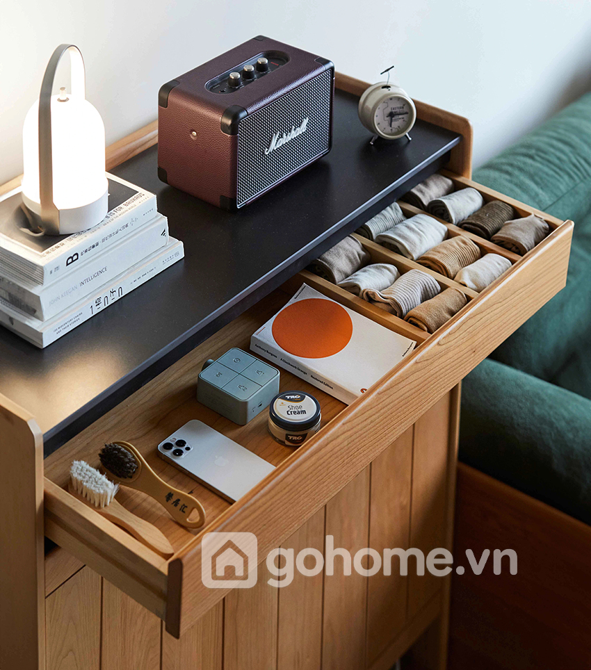 Ngăn kéo trên cùng: Rất tiện để cất ví, chìa khóa, kính mát hoặc các vật dụng cần dùng khi ra ngoài.