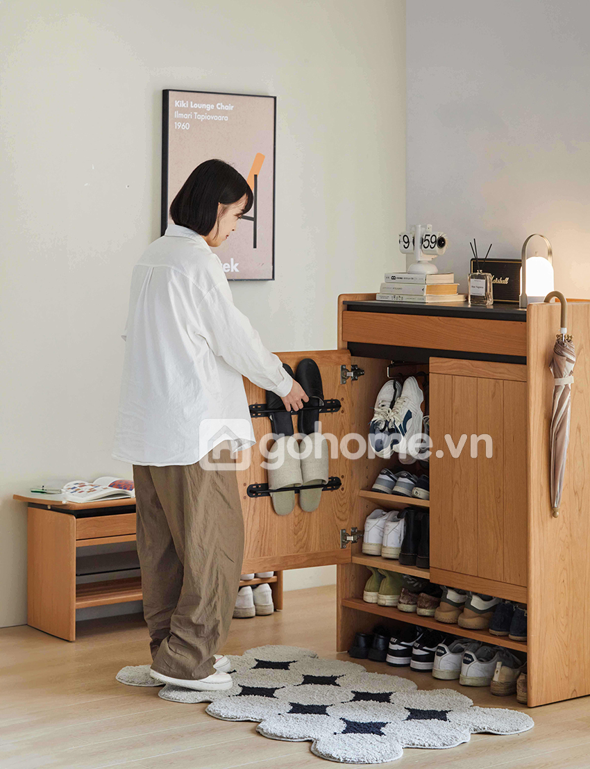 Tủ giày gỗ thiết kế tinh tế – Biến góc nhỏ thành “điểm chạm thẩm mỹ” trong ngôi nhà bạn