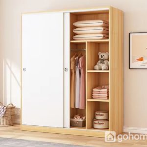 Chiếc tủ quần áo gỗ MDF được phủ Melamine chống trầy xước, hạn chế ẩm mốc và dễ dàng vệ sinh. Với kết cấu cánh trượt thông minh, bạn chỉ cần một thao tác nhẹ nhàng là có thể mở/đóng mà không lo chiếm chỗ như các mẫu tủ cánh mở truyền thống.