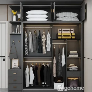 Tủ Quần Áo Gỗ Cánh Trượt Kèm Kệ Trang Trí – Giải Pháp Tiết Kiệm Diện Tích Hoàn Hảo
