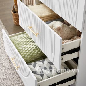 Chất liệu MDF lõi xanh + Melamine + Sơn cao cấp đảm bảo độ bền theo thời gian.