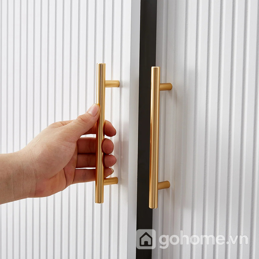 Tay nắm kim loại sơn tĩnh điện tông gold tạo điểm sáng nổi bật cho tổng thể, tăng tính sang trọng.