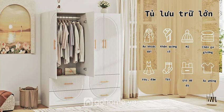 Tủ Quần Áo 4 Cánh Đẹp Sang Trọng GH-13068