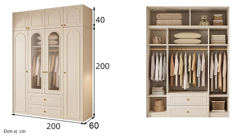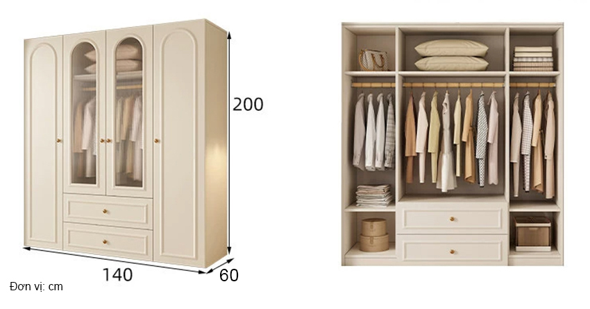 Sự phân chia khoa học này giúp chiếc tủ trở thành giải pháp lưu trữ thông minh cho mọi gia đình, đặc biệt phù hợp với những ai yêu thích tủ quần áo nhiều ngăn tiện dụng.