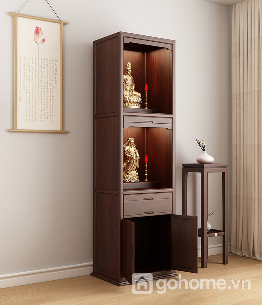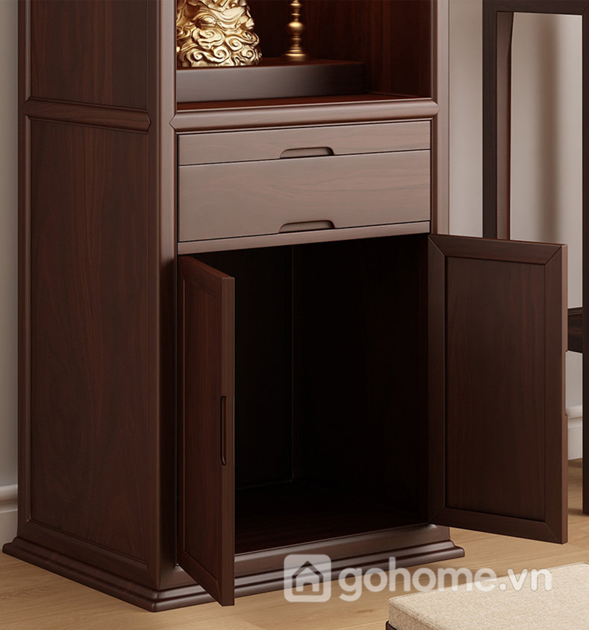 - Tầng dưới: tủ kín lưu trữ đồ thờ