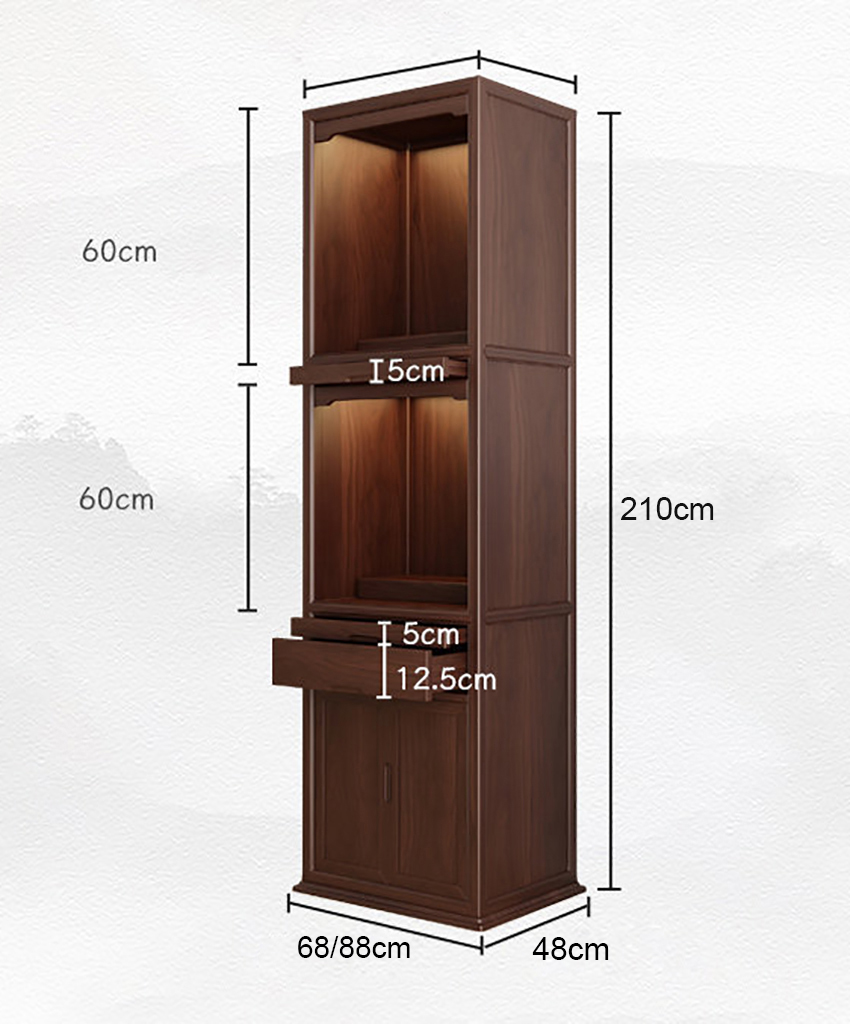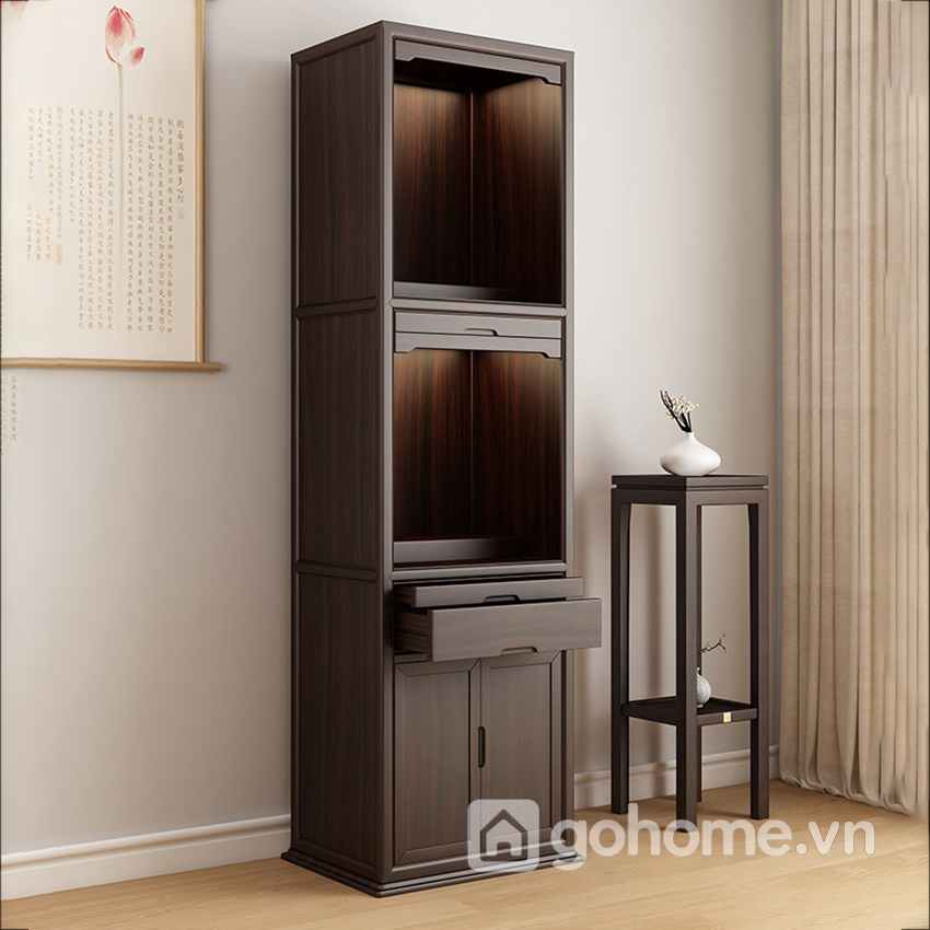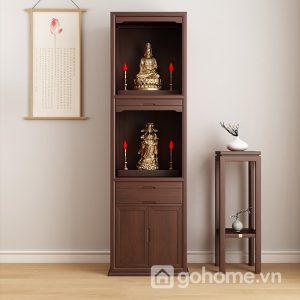Sản phẩm được thiết kế theo phong cách Á Đông hiện đại, giữ lại những nét truyền thống nhưng đã được tinh giản để phù hợp với không gian sống ngày nay. Ba tầng riêng biệt giúp phân chia chức năng rõ ràng: tầng trên cùng dành cho không gian thờ chính, tầng giữa tiện đặt vật phẩm phụ trợ, và tầng dưới cùng là khu lưu trữ kín đáo.