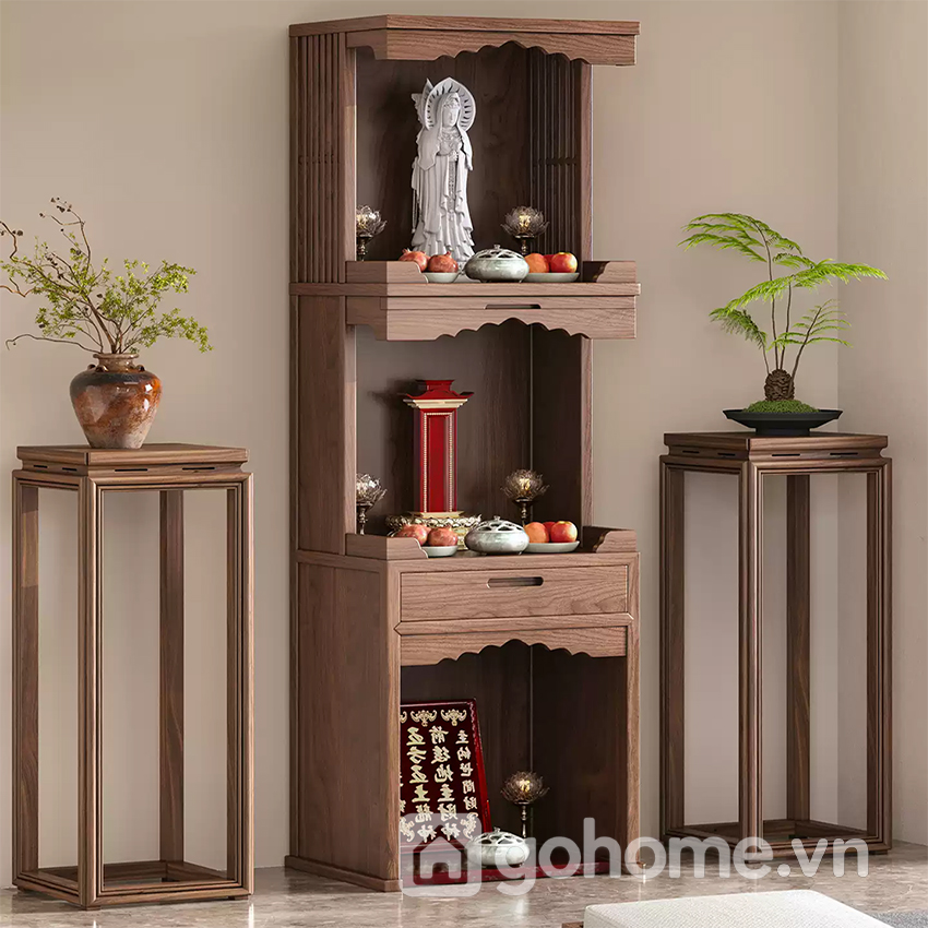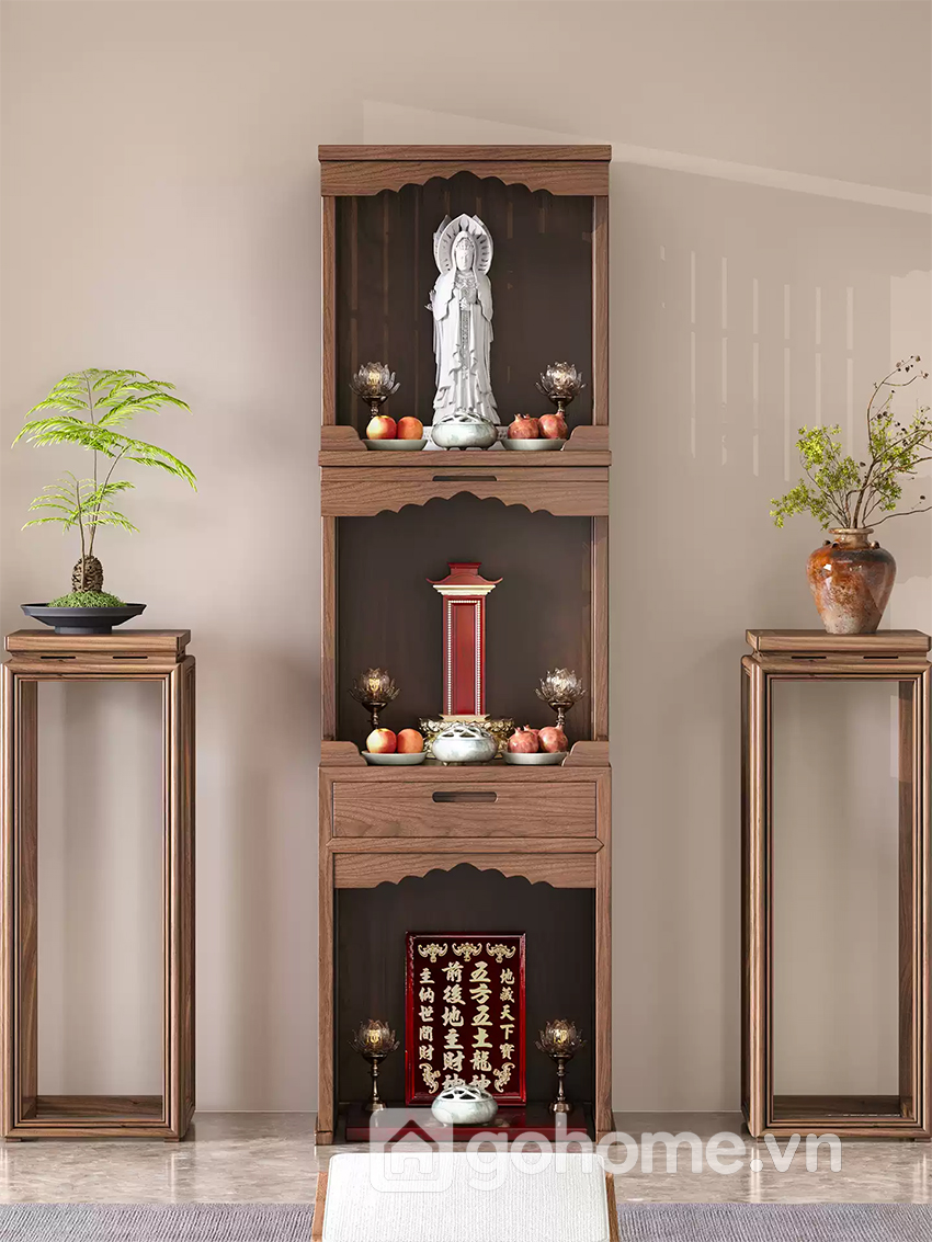 Điểm ấn tượng nhất của Tủ Thờ Gỗ Tự Nhiên 3 Tầng Đẹp Sang Trọng chính là bố cục 3 tầng được thiết kế hợp lý.